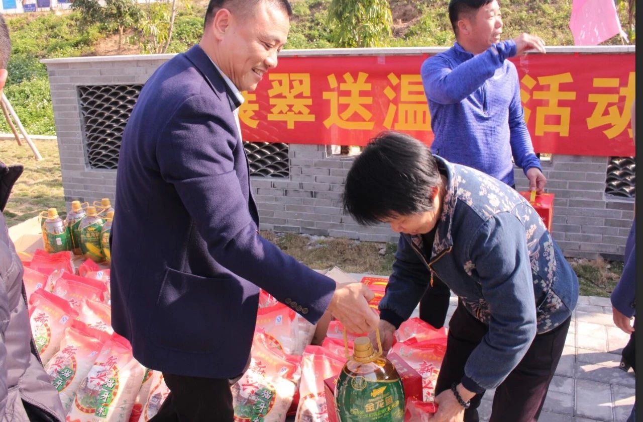 春節(jié)前夕,歸湖鎮(zhèn)鎮(zhèn)委張偉奇書記和鎮(zhèn)、村有關(guān)領(lǐng)導(dǎo)、展翠股份公司董事長陳樹喜一同來到幫扶貧困村歸湖鎮(zhèn)鋪頭村開展“扶貧送溫暖活動(dòng)”,為村民送上油、米、飲料等生活物資,在冬日里為村民送去一絲溫暖。